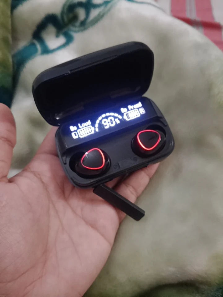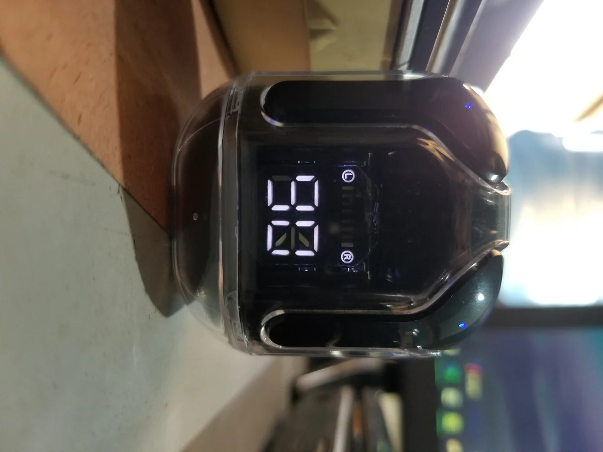Real-time battery levels for earbuds and case.